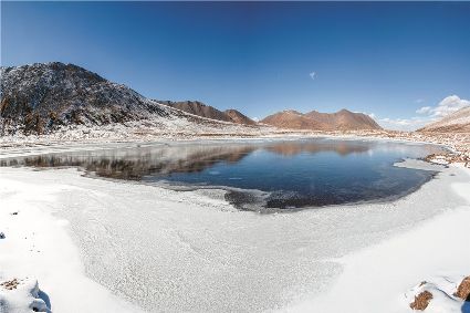 對常年生活在這片土地上的人們來(lái)說(shuō),一夜便能厚積沒(méi)履的大雪早已見(jiàn)慣不驚,但走出縣城一瞥石渠秋日的雪景,依舊讓人不由驚嘆大自然的鬼斧神工。不似平原、丘陵之妖嬈,石渠的雪景是宏偉壯麗的、是氣勢磅礴的,置身其中頓感渺小,心中唯余對自然之敬畏。在25191平方公里的土地上,無(wú)論草原或是山巒,入眼皆是一片耀眼的銀白,在頭頂萬(wàn)里無(wú)云的湛藍天空的輝映下,整個(gè)石渠只剩干凈的藍和純潔的白。