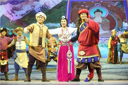 初生的音樂(lè )劇《康定情歌》是個(gè)聽(tīng)話(huà)謙遜的孩童,專(zhuān)業(yè)人士的諄諄教誨一定會(huì )牢記在心;他也是個(gè)具有思鄉情結的游子,自己的一顰一笑都流露出濃郁的民族風(fēng)采;同時(shí)他也是個(gè)頑強拼搏的逐夢(mèng)少年,即便汗水和淚水匯成一道道溝壑,依然挺胸不低頭,只為在明天,成為更好的自己。 (圖片由州歌舞團提供)
