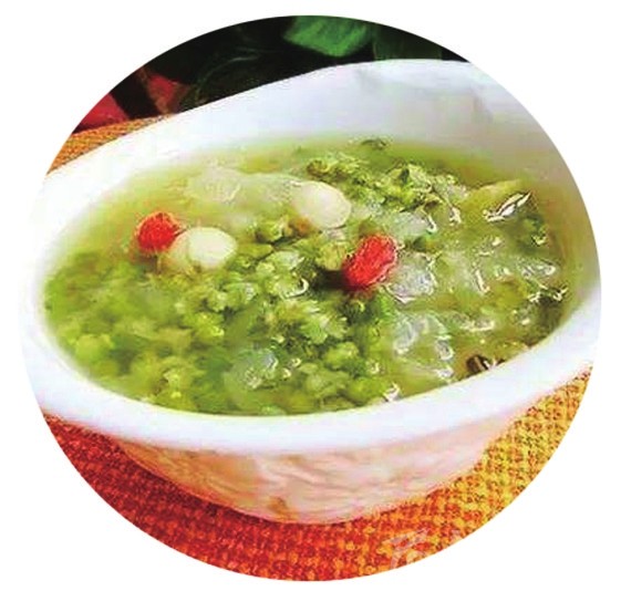 對付這種干燥,可以用綠豆和雞蛋黃沖一碗雞蛋湯:先把綠豆煮得開花了,這個時候的湯還是發(fā)綠的,不是發(fā)黃的,這樣就保存了綠豆的略微涼性。將雞蛋打到碗里,攪拌之后加上少量冰糖,之后用綠豆的綠湯直接沖到盛有雞蛋的碗中,生雞蛋的顏色就變黃了,基本上被燙熟了,放溫了之后飲用,對因?yàn)樘鞖飧稍镆鸬闹T多問題,包括干咳、口舌干燥甚至皮膚干燥都很有效。