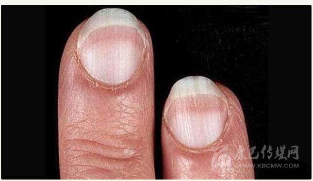 辨顏色。健康人的指甲一般是粉紅,有一定光澤且均勻。不少人把較白的指甲看做貧血征兆,但要對(duì)癥分析。如指甲發(fā)紫是動(dòng)脈硬化、血脂高,或心臟滯阻的前兆;指甲發(fā)青,則為重寒癥,血瘀;指甲發(fā)黃可能肝膽有問題,或血糖代謝不暢;還有一種指甲發(fā)藍(lán),顯示肺部受阻。