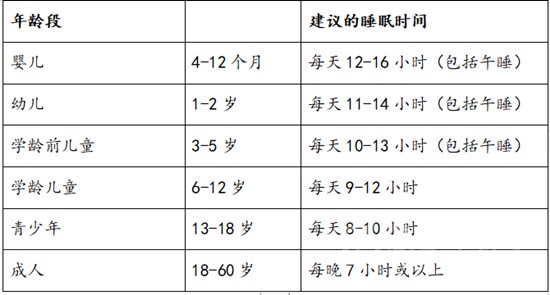 隨著年齡的增長(zhǎng),每個(gè)人需要的睡眠時(shí)間也會(huì)發(fā)生變化。美國(guó)睡眠醫(yī)學(xué)會(huì)和中國(guó)睡眠研究會(huì)建議: