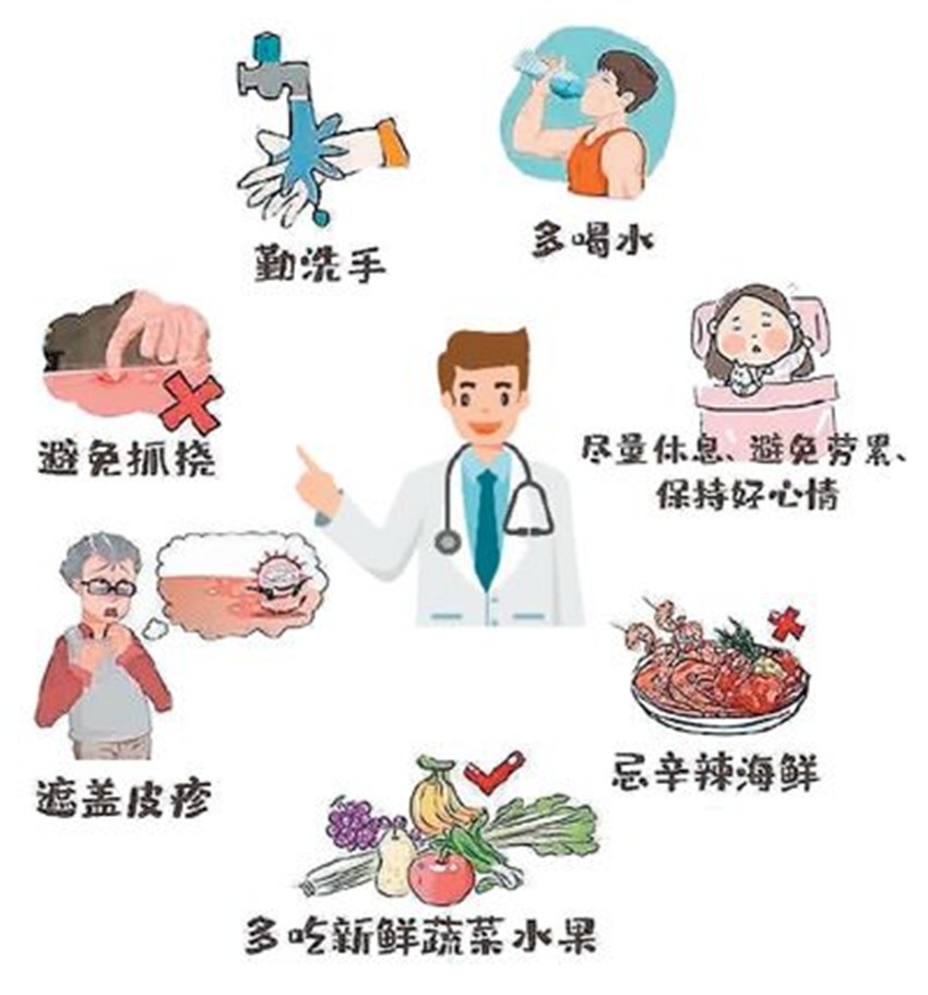 專家提醒,帶狀皰疹主要通過接觸傳播,抵抗力低的老年人和兒童應(yīng)避免接觸帶狀皰疹患者。與此同時(shí),中老年人以及有自身免疫缺陷的人群要注意休息,合理飲食,加強(qiáng)鍛煉,增強(qiáng)抵抗力;糖尿病、腫瘤等患病人群,要特別留意觀察自身免疫狀況,養(yǎng)成良好生活習(xí)慣,有效控制原有疾??;年輕人也不能掉以輕心,避免頻繁加班、熬夜等導(dǎo)致抵抗力下降。一旦發(fā)現(xiàn)患有帶狀皰疹,要盡快就醫(yī),同時(shí)注意避免抓撓皮疹處,勤洗手、多喝水、多吃新鮮蔬果,忌辛辣及海鮮,多休息,避免勞累,保持好心情。
