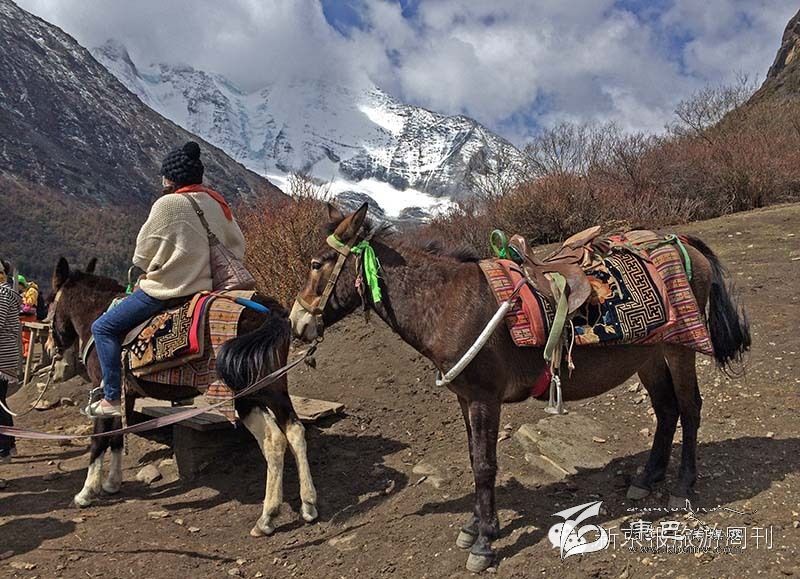 從沖古寺,我們乘坐觀光車前往洛絨牛場(chǎng)。這一路,我們碰到了牦牛群,放生的羊群,還有馱東西的馬幫。