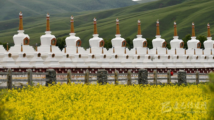 金黃的菜花與青山綠水、藏式民居相融,繪成一幅幅絕美的畫卷。據(jù)悉,道孚縣油菜盛花期將持續(xù)一個月?!坝筒嘶ㄩ_滿地黃,叢間蝶舞蜜蜂忙;清風吹拂金波涌,飄溢醉人濃郁香”。在漫山遍野金黃色的油菜花中,掩映著華麗的藏式建筑,使得每一個逃離紛繁城市的人都能找到歸宿。(圖片由中新社記者 劉忠俊 攝)
