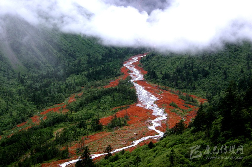 成千上百顆紅色石頭,堆積在河谷中、溪流里、山野旁,如果說(shuō)海螺溝是一首歌,那紅石就是音符,二者共同譜成了一曲絕美之歌。而那一抹紅色,與山間的溪流、谷中聳立的樹(shù)杉、青山綠水交相輝映,構(gòu)成了一幅大美于世的秀麗風(fēng)景畫(huà)卷。