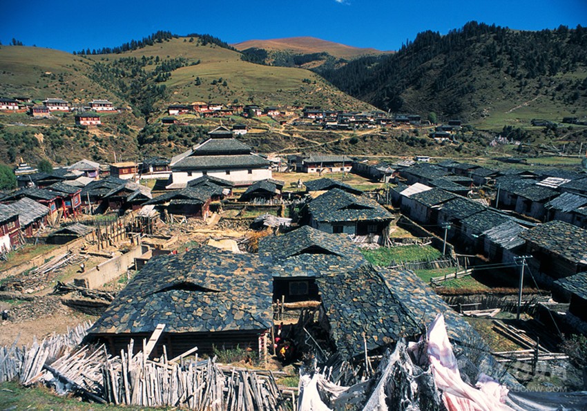 拉日馬意為“美如仙境,安居樂業(yè)”,曾經(jīng)是新龍至康定這條茶馬古道的貫穿之處。南距縣城60公里,北距道孚扎壩走婚大峽谷20余公里,海拔3600米。山、水、林、草原、珍禽異獸、扎宗寺、尊勝吉祥如意塔、甘珠爾石刻彩繪佛塔、石板藏寨的絕美搭配,盡顯中國西部神韻,素有“天堂部落拉日馬”和“中國石板藏寨”之美譽(yù)。拉日馬鎮(zhèn)有個(gè)叫扎宗村的寨子,這里的民居大多用石板蓋成,一宅一院,木柵欄、青石路、石板屋頂,古樸而實(shí)用。在藏區(qū)許多地方有石板蓋的房屋,但像拉日馬這樣集中、形成一個(gè)整體的不多見。
