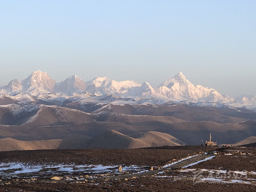 紅日噴薄而出,冰雪洗禮后的魚(yú)子西迎著旭日,吐故納新。圖為從魚(yú)子西眺望貢嘎雪山。