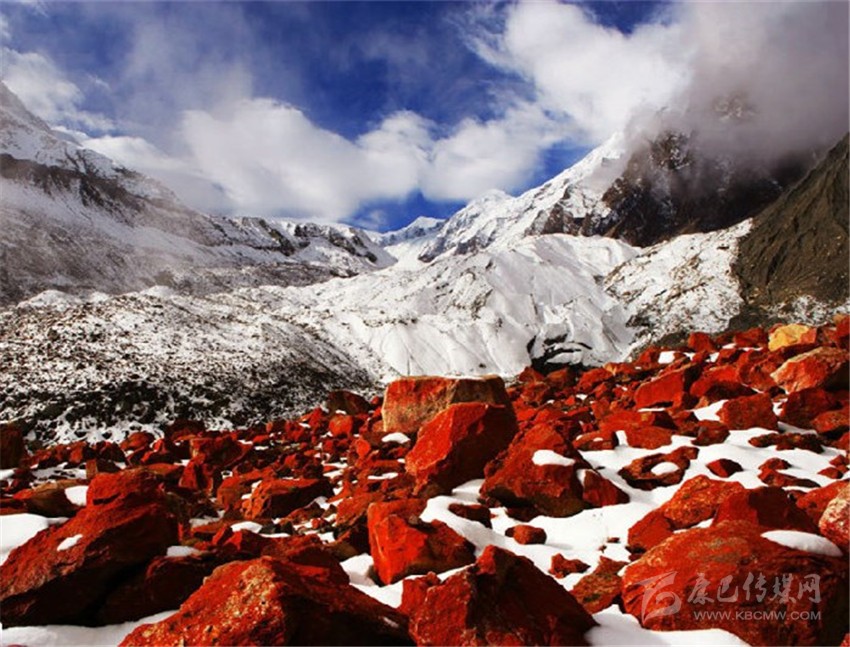 在積雪厚厚的遮掩之下,紅石灘永遠是震撼人心的風景。在綿延數(shù)十公里的河谷中,在茫茫的積雪下,紅石絲毫不甘寂寞,處處顯露出它們火一般的色彩來,在藍天的映襯下更加鮮艷奪目,這般壯美的景象讓毛能之恍如走進另一個星球。