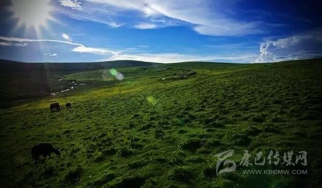 達(dá)通瑪大草原位于縣城西北部,天高云淡、空氣清新、陽光明媚。放眼望去,廣闊無垠的大草原恰似藍(lán)天下的一塊巨大綠毯。