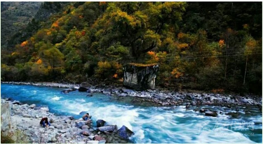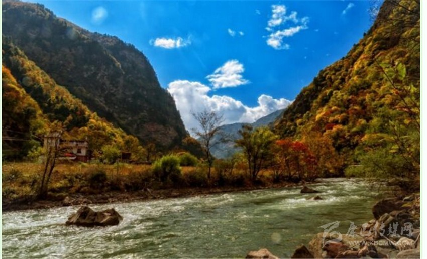 東谷河原名牦牛河,在丹巴縣五個主干水系中,它是最小的一條,兩岸多為峽谷地貌,僅在支溝匯合處出現(xiàn)有平壩草地。在陡峭高聳的河谷兩岸,針闊葉混交林呈現(xiàn)出深淺不同的綠色,既有青黛,墨綠,又有嫩綠,草青及四季輪番開花的不同品種的大小杜鵑。還不時有珍禽出沒。每當秋高氣爽的季節(jié),一團團,一簇簇的紅葉伴隨杜鵑花在林間綻放,伴以宛轉(zhuǎn)的啾啾鳥嗚;河水清澈明亮,時而奔騰而下,形成飛瀑,時而伴著叮咚之聲潺潺而過,這種美景何處能有?老革命家胡耀邦同志游覽后,對此青山綠水贊不絕口,并稱之為“天然盆景”!盆景藝術(shù)一向以“無聲的詩詞,立體的畫卷”來形容。牦牛谷景點正是一個有著巨大篇幅的詩詞,一個有著廣闊的立體畫卷。