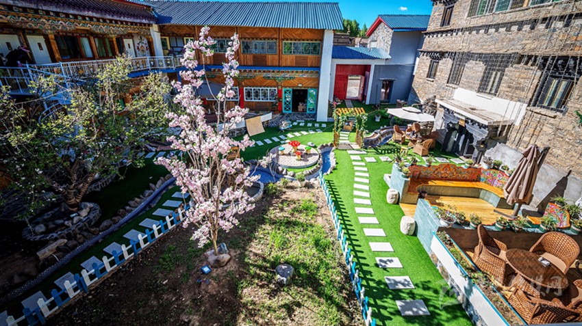 曾經的倉庫變成了咖啡廳,關牛的地方變成了餐廳,土司房變成了溫泉套間,四合院變成了小橋流水,雖然有些改變,但留給客人的依舊是一個傳統(tǒng)藏式四合院?!拔ㄒ桓淖兊闹皇嵌嗔诵┬氯诵率聛韥硗?,在這里從你的全世界路過……”石雅琴借用張嘉佳的《從你的全世界路過》的話語,道出了她對“親愛的宅宅”的“定性”。