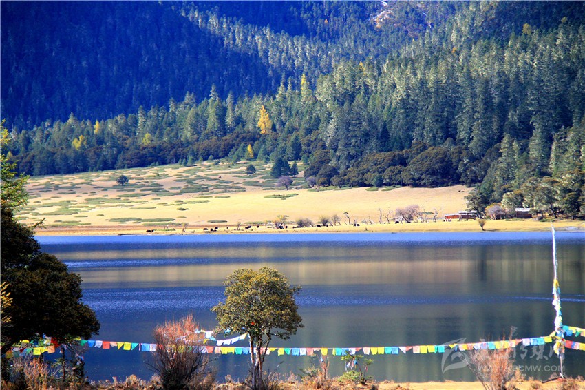 秋季的木格措風(fēng)景區(qū),五彩斑斕的彩林倒映在明麗的湖水中,蒼茫的高山灌叢比夏花還妖艷動(dòng)人,金燦燦的陽光,深邃的木格措圣湖凸顯著鮮明的自然個(gè)性,好像走進(jìn)了五彩繽紛的光影世界。