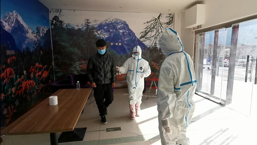 游客正在接受檢測。