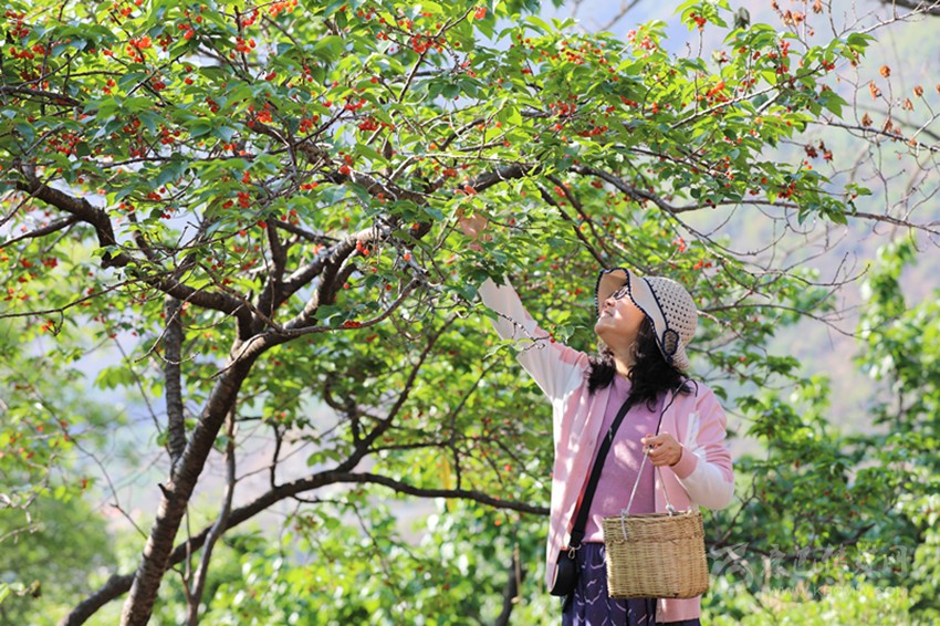雖然視聽盛宴落下帷幕,但是舌尖狂歡季才剛剛開始。文藝匯演結束后,大家信步漫游在杵坭村的田間小道上、櫻桃果園中,聽果農講述櫻桃知識,體驗采摘樂趣、品嘗紅果甘味,盡情地享受著這歡樂的周末時光。