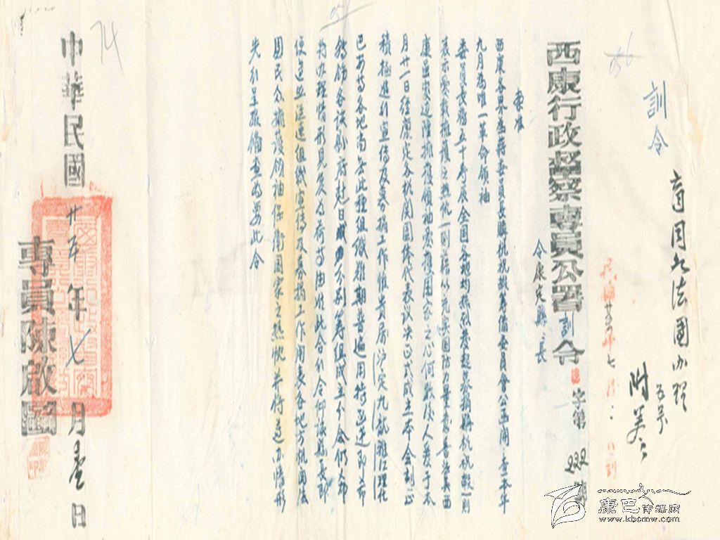 這是一份在1936年7月,由西康行政督察專(zhuān)員為動(dòng)員西康各界民眾捐款購(gòu)買(mǎi)飛機(jī)發(fā)出的訓(xùn)令;康定城中及西康省康屬地區(qū)各縣民眾捐款購(gòu)飛機(jī)的活動(dòng)一直持續(xù)到1940年,據(jù)1940年4月的《西康新聞》,在15日、16日兩天連續(xù)刊登“西康省中國(guó)兒童號(hào)飛機(jī)捐籌募款數(shù)目表”,公布了西康省民眾捐款購(gòu)飛機(jī)的結(jié)果。