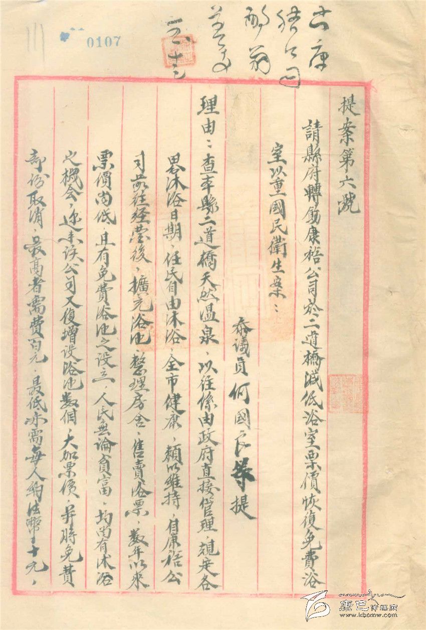 另一份舊檔案也有趣,這是一份由一名參議員提出的提案,內(nèi)容是由于生活在康定的人、包括公務(wù)人員在內(nèi),因?yàn)槭杖肷伲罾щy。請(qǐng)求康定縣政府出面給經(jīng)營(yíng)二道橋的“康裕公司”提出二道橋洗浴不收費(fèi),經(jīng)營(yíng)方的虧空可以在其它經(jīng)營(yíng),如餐飲獲得的利潤(rùn)中解決。參議會(huì)上還通過了這個(gè)提案,說是“原案所擬辦法尚屬可行,擬送請(qǐng)縣府轉(zhuǎn)飭康裕公司照辦”。這份提案再無下文,康裕公司是不是照辦了,不得而知,就是參議會(huì)是不是轉(zhuǎn)給了康定縣政府也不得而知。以今天的眼光看,這份提案有滑稽、有趣的一面,卻也有關(guān)注民生而十分無奈的一面。