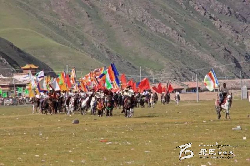 藏歷五月初四,就是色達(dá)牧民的祭神節(jié)。這天,牧民們在各色布上印上象征福氣的經(jīng)文,在經(jīng)旗周邊裝飾上白、紅、黃、綠、蘭布條。男子在自己的火槍槍架上,飾以經(jīng)幡,上邊掛一緞制煙祭用的小袋騎馬趕赴節(jié)日集會地點(diǎn)。