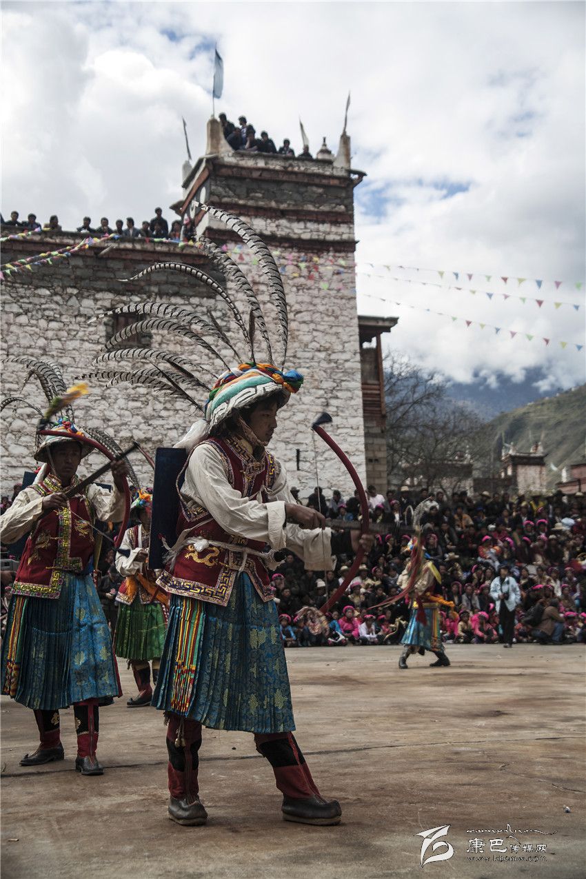 丹巴縣巴旺鄉(xiāng)村民跳弓箭舞。