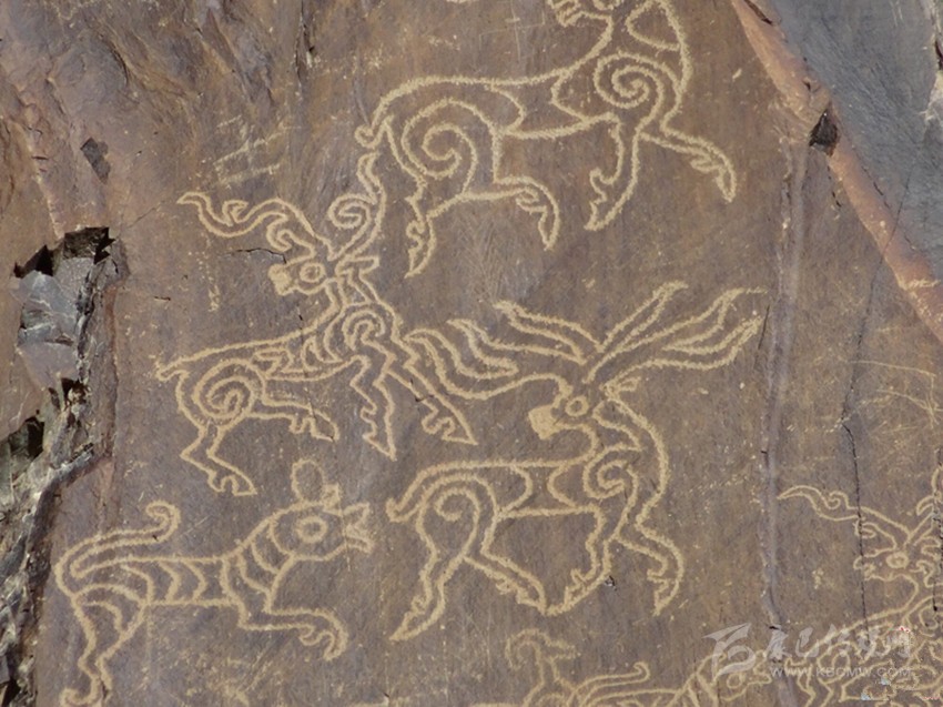 這個傳說暗合了青藏高原上的遠古美術,在西藏日土縣任姆棟遺址發(fā)現(xiàn)新石器時期的巖畫,就是使用堅硬材質在巖石表面來刻畫圖像的。從這些巖畫上我們可以看出,西藏美術所具備的兩個藝術基因:一是以線造形的方式,二是裝飾性的畫風。這兩個基因至今還在唐卡中保留著。