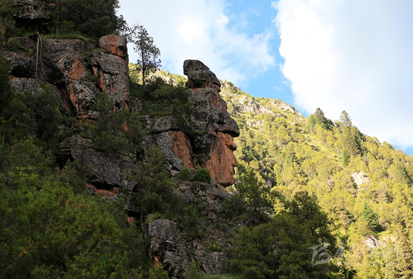最近,藏族著名攝影家、藏地陽光雜志主編根秋多吉先生與藏地陽光記者丁真尼瑪,在德格縣柯洛洞鄉(xiāng)多爾家溝采訪時,拍攝到了一組奇特的作品。鏡頭中這組山巖由于自然風化的原因,形狀構(gòu)造像極了傳奇的嶺·格薩爾王。