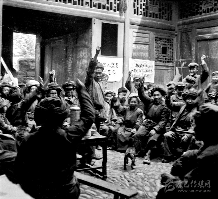 當(dāng)年在金湯區(qū)老區(qū)政府內(nèi)開會的群眾。