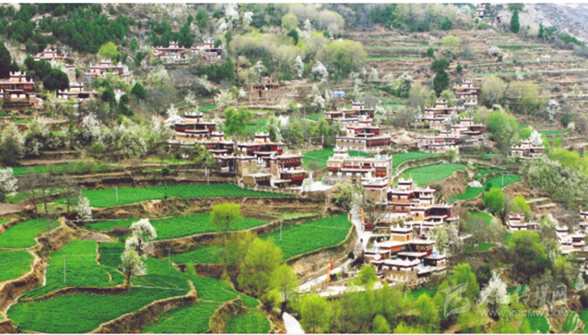 甲居,藏語是“百戶人家”的意思。實(shí)際上甲居藏寨分為一村、二村、三村共150余戶人家,700多人口,甲居藏寨所在地形如一個(gè)面積為5平方公里的大盆,大盆斜倚卡帕瑪群山,一棟棟外形別致、色彩鮮艷的典型嘉絨藏式民居錯(cuò)落有致地從山腳一直排到半山。甲居人一代一代修造的梯田點(diǎn)綴民居之間,顯示出別具一格的田園韻味。茂密的柏樹掩映著民居,這些別致的民居不象故宮規(guī)模對稱,也不象蘇州園林隨興布局。碉樓式的民居雖無嚴(yán)格的統(tǒng)一規(guī)劃,但卻似乎不是隨意而建,每棟民居都有它獨(dú)特?fù)屟鄣娘L(fēng)格。正是這些別具一格的座座碉樓民居,構(gòu)成甲居藏寨的精妙絕倫。民居外所立的經(jīng)幡以及房頂隨風(fēng)飄動的瑪尼旗,又為恬靜如詩的鄉(xiāng)土民居增添了無限神秘的色彩。祥云籠罩山頂,溪水潺潺環(huán)流,山腳滾滾河流,山水渾映,天水合一,筆者一行不由驚嘆,甲居藏寨 ,名符其實(shí)的人間仙境,世外桃源!先前道路險(xiǎn)峻留在心底的驚懼早已一掃而光,一行人激動著迫不及待地?fù)渖碛诿啦粍偈盏南删持小?/p>