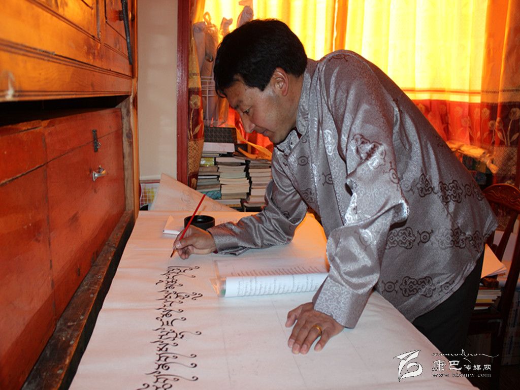 他就是巴松鄧珠,甘孜縣民族中學高級教師,從事藏文和藏文書法教學?,F(xiàn)為州老年書法家協(xié)會會員、州書法家協(xié)會會員和州藏文書法協(xié)會會員。