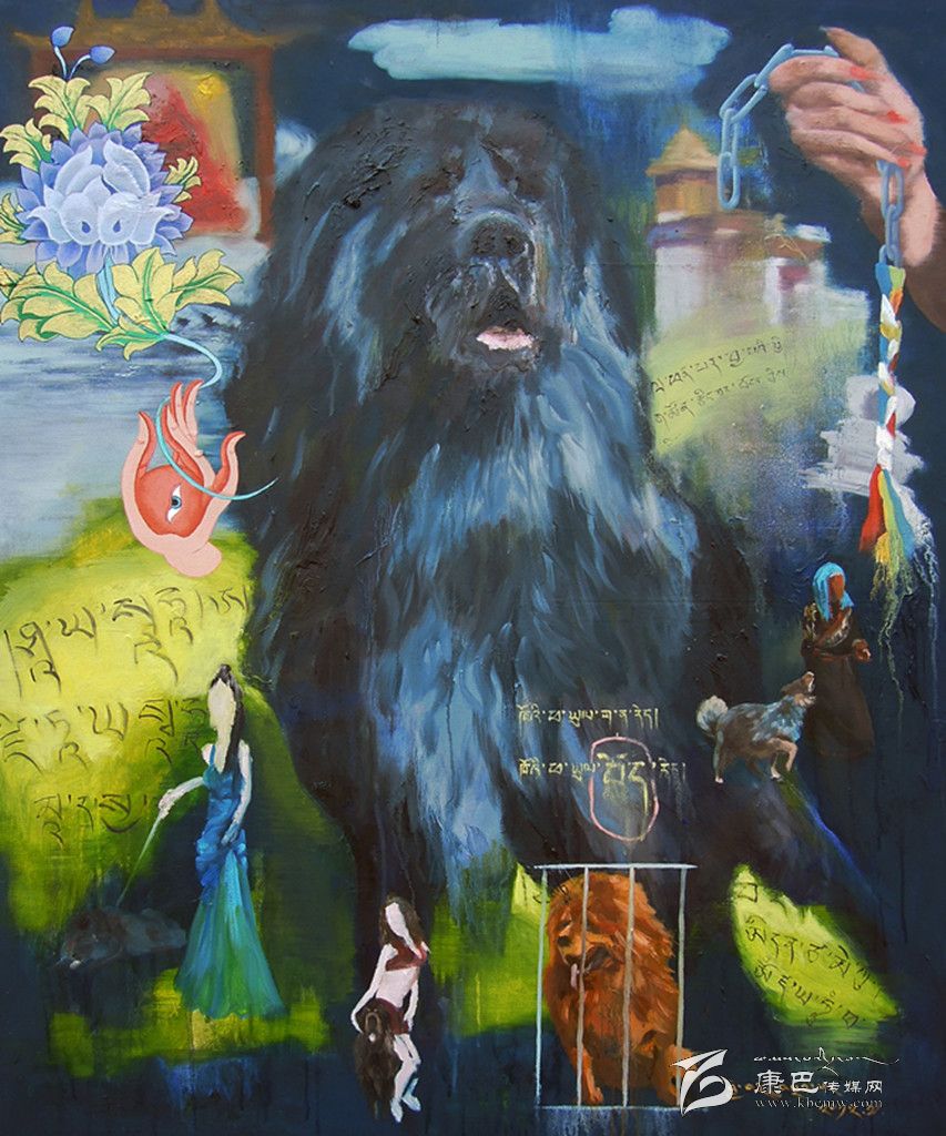 采用藏區(qū)題材做藝術(shù)的藝術(shù)家不在少數(shù),強調(diào)寫實、原汁原味是大部分藝術(shù)家的選擇,但生于康定的藝術(shù)家周韜卻有另一番更深入的認識。與美國印第安藝術(shù)家Brad kahlhamer一樣,他用更加強烈動態(tài)的視覺制造了一個魔幻世界,讓眾人熟悉的藏區(qū)元素在畫面上集中而豐富地跳躍起來,比如喇嘛、活佛、長辮子的藏族女人,甚至形狀怪異的骷髏!