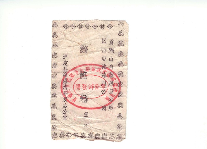 我有心收藏海螺溝旅游開發(fā)建設三十年來不同時期、品相各異的門卷、門票數(shù)枚。門卷、門票是游客進入景區(qū)的憑證,也是景區(qū)的“臉面”。在我收藏的門卷、門票中有一枚海螺溝景區(qū)第一代門卷。構(gòu)圖簡單,白底黑字的第一代門卷,雖然在歲月中褪去了鮮色,但在方寸之間卻承載著海螺溝景區(qū)建設最初的時光和開發(fā)建設者的記憶,更是瀘定縣三十年前發(fā)展旅游的歷史見證。一晃三十年光陰,至今我對海螺溝景區(qū)第一代門卷的來歷,還記憶猶新。