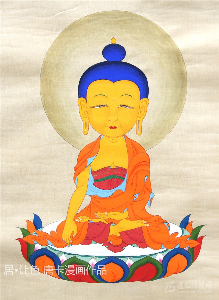唐卡是藏族最具代表性的藝術(shù)門類之一,在其千年的傳承歷史中吸收融合了印度、尼泊爾等多地的藝術(shù)元素,發(fā)展成為極具雪域特色和審美價(jià)值的藝術(shù)形式。傳統(tǒng)唐卡缺乏立體感和形象感,畫面層次模糊,人物形象單薄,不利于民族文化傳承,“對(duì)于不懂畫的人來(lái)說(shuō),這種畫法他們看不懂?!被诖耍印ぷ屔珜?duì)唐卡繪畫技法作了改良,結(jié)合現(xiàn)代漫畫,以寫實(shí)的手法,實(shí)現(xiàn)活態(tài)傳承、永續(xù)流傳目的。