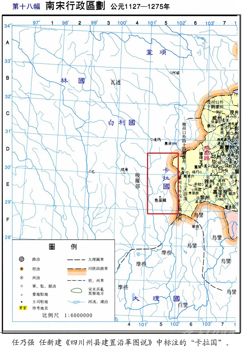 今屬康定縣的木雅,又分為上木雅和下木雅。下木雅的色烏絨地方,是木雅王曾住過的地方之一。民間又稱住在這里的王為“西吳甲布”(即“西吳王”),進而又附會出個“西吳國”來。從木雅貢嘎西邊那條叫色烏絨的山溝往南到打箭爐,正如傳說的那樣,早年一般要走三天?!对贰酚小昂任帷钡挠涊d,“喝吾”“色烏”都是藏語的音譯,藏語“絨”為山溝之意,指的就是這個色烏絨。元世祖忽必烈征滇,沿大渡河、金沙江而進,得到沿途部落首領的大力支持。長河(大渡河)西的“西吳王”自然也不例外。所以在至元四年(公元1267年)“冬十月壬戌,魚通巖州等到處達魯花赤李福,招諭西番諸族酋長以其民入附,以阿奴版的哥等為喝吾等處總管,并授璽書及金銀符?!钡玫缴w有皇帝大印(玉璽)文書和金銀符,朝廷正式任命為“喝吾”總管的酋長(木雅王)阿奴版的哥,之后從色烏絨遷到打煎爐,不僅成為朝廷認可的“長河西土官”,還作了“四川分省右丞”。我們是否可以判定,“木雅王”遷爐的時間應在至元四年(公元1267年)之后?1267年距今740多年,以此推算,如前文所說:今天西爐(康定城)的歷史,大約為700年!再者,若從宋代的“卡拉國”算起,說“明正”歷四十二代,不能說沒有一點來頭。