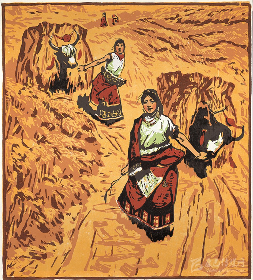 版畫家李煥民曾說:“在水乳交融的生活中,藏族人民以樸實、友好、慈愛,哺育了一代代美術(shù)工作者。”與40年代進藏的前輩大師所不同的是,這批新中國的畫家進藏后不再以畫者的角度來欣賞西藏,而是與藏民同吃、同住、同勞動,深刻地體會藏民的生活和精神世界。他們走進西藏,就是一次次以平等、學習、尊敬的態(tài)度和藏族同胞一起生活、一起唱歌跳舞,所以他們對西藏人民的感情充滿真摯。當然,這也是一個漫長且辛苦的過程。但正是這個艱辛過程,使得他們的作品更加真實和接地氣,他們把民族精神、民族團結(jié)、積極向上的時代魂魄留在他們的作品里,也成為他們藝術(shù)生涯的經(jīng)典之作。
