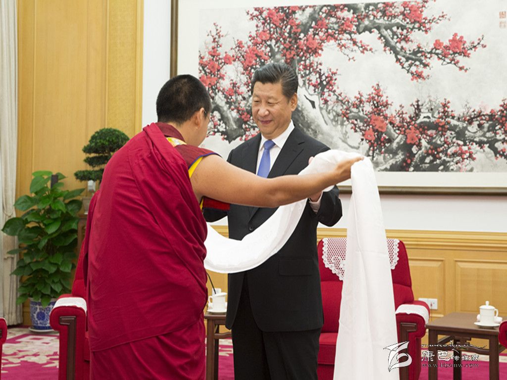 班禪向習(xí)近平敬獻了哈達(dá),并介紹了他坐床20年來的情況,習(xí)近平對他在各方面取得的進步表示祝賀。