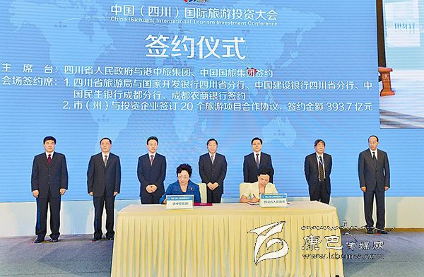 簽約儀式上,省政府與港中旅集團、中國國旅集團分別簽訂促進旅游業(yè)發(fā)展戰(zhàn)略合作協(xié)議;省旅游局與國家開發(fā)銀行四川省分行、中國建設(shè)銀行四川省分行、中國民生銀行成都分行、成都農(nóng)商銀行,分別簽訂支持旅游業(yè)發(fā)展戰(zhàn)略合作協(xié)議;各市(州)與相關(guān)投資企業(yè)簽訂20個旅游項目合作協(xié)議,簽約金額393.7億元。