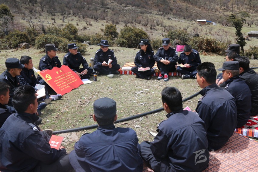 九龍縣公安局黨員在蟲草山上一邊為群眾服務(wù),一邊開展“兩學(xué)一做”學(xué)習(xí)教育。本網(wǎng)資料庫圖