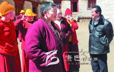 在雅江縣委、縣人大常委會(huì)主要領(lǐng)導(dǎo)及統(tǒng)戰(zhàn)、宗教部門的陪同下,李康來到距縣城90多公里的雅江縣紅龍鄉(xiāng)158k覺姆寺,同寺管會(huì)成員和部分僧尼進(jìn)行座談。他詳細(xì)了解寺廟的基本情況,仔細(xì)詢問僧尼的生產(chǎn)生活和寺廟佛事活動(dòng)開展情況,認(rèn)真傾聽僧尼的反映和訴求,對僧尼提出的困難和問題詳細(xì)記錄,認(rèn)真答復(fù),耐心細(xì)致地講解宣傳黨的民族宗教和惠寺惠僧政策。座談會(huì)上,李康主任簡短的開場白很快拉近了大家的距離,他說,這次專門到寺廟的目的就是看望大家,建立聯(lián)系,了解情況,收集問題,希望大家暢所欲言,互相溝通,加強(qiáng)交流,增進(jìn)了解,共同推進(jìn)寺廟的健康有序發(fā)展。當(dāng)他了解到該寺的水、電問題在縣委、政府的關(guān)心重視下,今年即將得到解決時(shí),他說,州、縣黨委、政府歷來十分關(guān)心寺廟的基礎(chǔ)設(shè)施建設(shè)和廣大僧尼的生產(chǎn)生活、健康醫(yī)療等問題,寺廟的水電、道路、通信等基礎(chǔ)設(shè)施始終得到了黨委、政府的關(guān)心支持,僧尼的醫(yī)保、養(yǎng)老和最低生活保障等生活保障措施正在全州寺廟全面覆蓋。對寺廟的其他困難和問題,州、縣將積極協(xié)調(diào),盡快解決。他強(qiáng)調(diào)指出,158k覺姆寺近年來通過縣委、政府綜合施策,強(qiáng)化教育,規(guī)范管理,寺廟整體情況良好,步入了依法管理的良性軌道。他講到,我們黨的民族宗教政策是長期的、一貫的,寺廟作為基本社會(huì)單元,僧尼作為普通公民和基本群眾,要自覺接受當(dāng)?shù)攸h委、政府依法管理,維護(hù)祖國統(tǒng)一、民族團(tuán)結(jié)和法制尊嚴(yán),推動(dòng)宗教與社會(huì)主義社會(huì)相適應(yīng),與現(xiàn)代文明進(jìn)程相協(xié)調(diào),積極投入全州發(fā)展中來,共同建設(shè)好我們的和諧幸福家園。任何寺廟只要服從當(dāng)?shù)攸h委、政府的管理,認(rèn)真貫徹落實(shí)好藏傳佛教的各項(xiàng)管理規(guī)定,真正發(fā)揮好宗教的正面積極作用,寺廟才會(huì)得到黨委、政府更多的關(guān)心支持,才會(huì)得到更好的健康發(fā)展。他希望158k覺姆寺要依法加強(qiáng)宗教事務(wù)的管理,深入貫徹落實(shí)《甘孜州藏傳佛教事務(wù)條例實(shí)施細(xì)則》,促進(jìn)依法治寺、規(guī)范管寺,為維護(hù)正常宗教秩序、服務(wù)經(jīng)濟(jì)社會(huì)發(fā)展、促進(jìn)社會(huì)和諧穩(wěn)定做出積極貢獻(xiàn)。