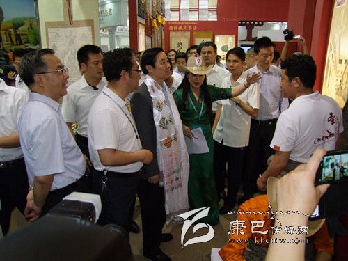 視察中,劉奇葆興致勃勃地觀看了我州文化形象展示大屏幕和非物質(zhì)文化遺產(chǎn)展示、土特產(chǎn)品及民間工藝品。他來到藏文書法、藏族噶瑪嘎孜畫派、藏族藥泥面具制作技藝等非物質(zhì)文化遺產(chǎn)項(xiàng)目和土特產(chǎn)品展品前,仔細(xì)詢問這些藝術(shù)品的生產(chǎn)工藝、制作流程等情況后,對我州深厚的文化底蘊(yùn)和豐富的旅游資源連連稱贊,殷切希望甘孜州傳承好歷史文化,發(fā)揮好民間藝術(shù)非遺項(xiàng)目,走文化