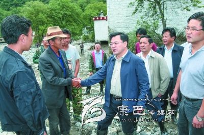 胡昌升在丹巴縣東谷鄉(xiāng)泥石流災(zāi)害現(xiàn)場(chǎng)察看災(zāi)情、指導(dǎo)救災(zāi)工作、慰問(wèn)受災(zāi)群眾。