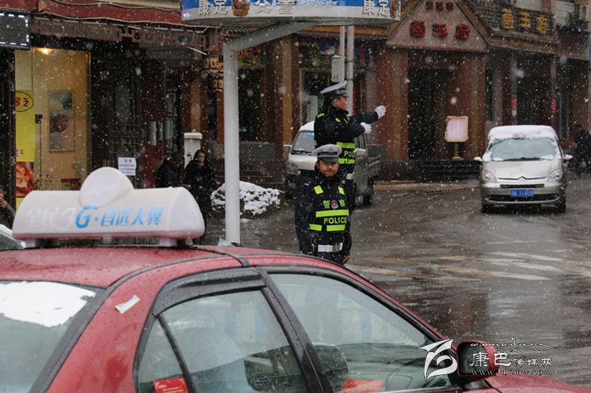 13日早晨9點多,記者來到康定街上,交警羅成正堅守崗位指揮交通,他說,“為保障交通順暢,行人安全出行。我們一早就上崗了。”在州交警大隊,剛出完警回來的中隊長郭平告訴記者:“由于這是今年來的第一場雪,為了保證交通安全,我們出動了大量的警力。”在得知下雪的第一時間,州交警隊的大隊長李雪林便帶隊分片區(qū)進行現(xiàn)場疏導了。據(jù)郭平介紹,部分城區(qū)的警力換崗回來稍作調(diào)整,又出發(fā)上崗,而在折多山和里城較遠地方的警力就原地調(diào)整。為了保證下雪時候的道路暢通和行人出行安全,州交警隊在折多山頂建立了便民警務站,里面配備了熱水、食品、維修工具及供氧設備等,為司機和旅客提供方便??紤]到雪天等極端天氣,州交警大隊啟動了雪天應急預案,采取“遠端管控、近端分流、現(xiàn)場疏導”等措施,依據(jù)具體情況對單邊或突發(fā)事件進行處理。同時,為了解決車輛在下雪天氣因拋錨而發(fā)生擁堵的問題,州交警隊還聯(lián)合州交通部門在折多山放置挖掘機及裝載機,聯(lián)系了相關汽車維修廠現(xiàn)場救急。州交警部門提醒市民,雪天車輛要加掛防滑鏈條,減速慢行,行人要盡量靠邊行走。