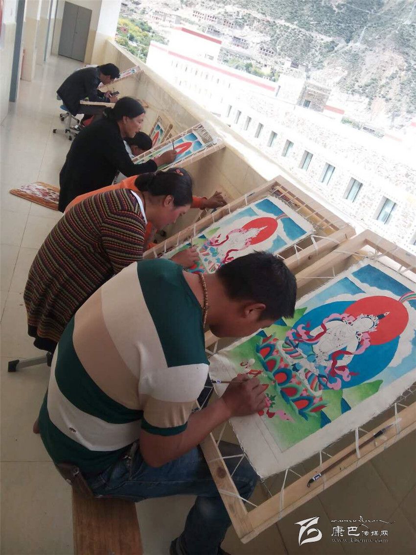 學(xué)員們正在專心致志地學(xué)習(xí)唐卡繪畫(huà)技法。