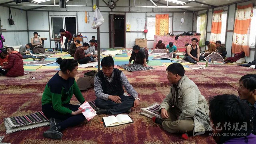 色達手工藝合作社加工人員正在商討民族工藝品制作。