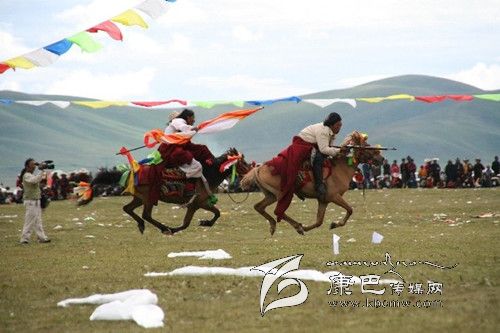 賽馬是廣大藏族群眾十分喜愛的一項體育運動。隨著時代的發(fā)展,賽馬節(jié)的內涵不斷拓展,已形成一種內容豐富多彩的傳統(tǒng)文化。它不僅是農牧民群眾縱情歌舞的聚會,交流農畜產(chǎn)品的市場,而且是藏族群眾展示精神風貌的舞臺。在所有民間傳承的藏族節(jié)日中,幾乎都少不了賽馬活動,并且此項活動有著悠久的歷史。圖為石渠牧民正在開展賽馬活動。 (李宏 攝影報道)