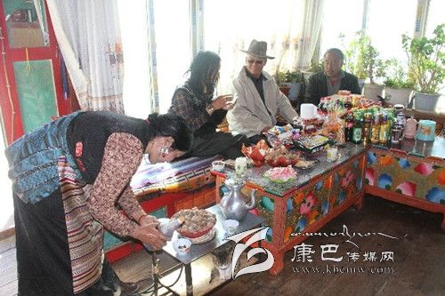 說(shuō)話間,聽(tīng)見(jiàn)女兒四郎曲珍和媽媽從廚房里端著牛肉包子走了出來(lái)。廚房里冰箱、高壓電飯煲等家用電器一應(yīng)俱全,他興激動(dòng)地說(shuō):“現(xiàn)在,縣上大力實(shí)施農(nóng)村的五通工程,用電也十分方便;以前打酥油茶都用木桶,現(xiàn)在有高原專(zhuān)用的打茶機(jī),既快捷又方便;……”