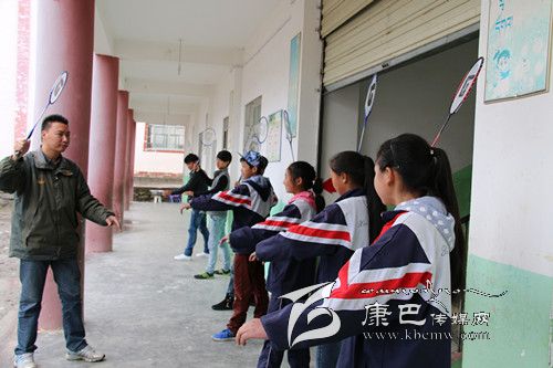 關(guān)軼為校羽毛球隊做現(xiàn)場輔導。