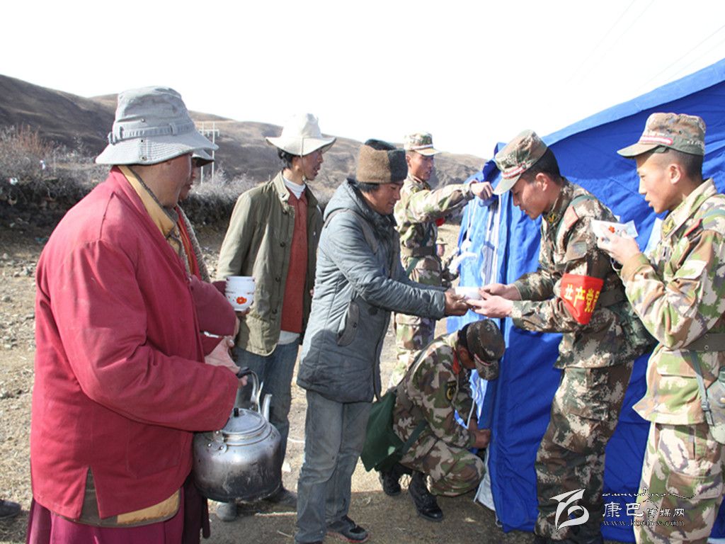 自康定“11·22”地震發(fā)生后,各方救援力量紛紛奔赴災(zāi)區(qū)開展救援工作。中谷村海拔約4000米,這里氣候寒冷,全村182戶不同程度受災(zāi),在救援隊大力幫助下,該村得到了很好的安置。在救援安置過程中,該村金龍寺的僧人和村民們被救援隊員們一方有難八方支援和艱苦奮斗的精神所感動,他們發(fā)現(xiàn)救援隊員們很難喝上熱水時,就懷著一顆感恩的心,搭灶架鍋燒起了熱茶,送到救援隊員手中,表示感謝。