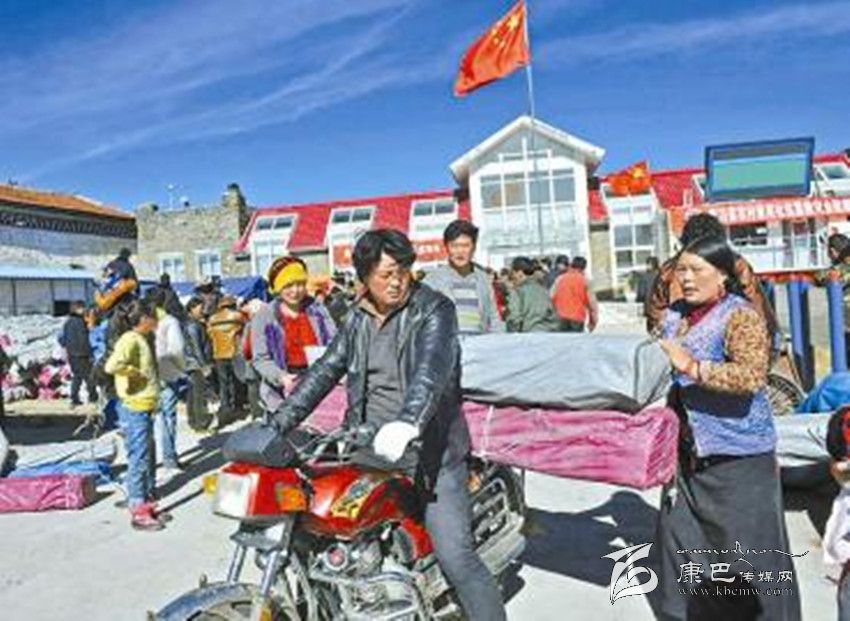 11月26日,康定縣塔公鄉(xiāng)江巴村受災(zāi)村民將在村委會領(lǐng)到的救災(zāi)物資拉回家。 吳傳明 攝