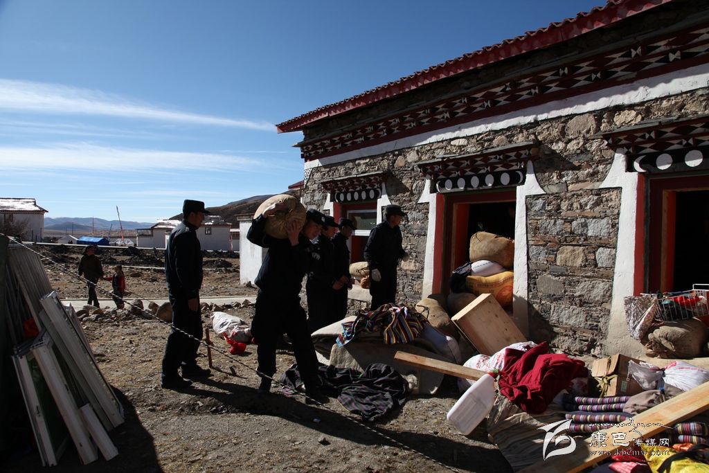 26日一大早,記者驅(qū)車趕往塔公江巴村采訪,在江巴村一戶受災群眾家院壩內(nèi),看到了一群熟悉的聲影,他們正在幫村民巴扎轉(zhuǎn)移糧食。村民巴扎家堆放糧食的房屋外墻受地震影響裂開了幾到明顯的口子,磚瓦散落一地。主人家非常擔心房子垮了將糧食掩埋,這是他辛苦了一年的勞動成果,更是一家人過冬的口糧,正當巴扎心焦如何將這兩千余斤糧食如何轉(zhuǎn)移到安全地帶時,他們出現(xiàn)了。當他們了解到巴扎想盡快把糧食和其他物品轉(zhuǎn)移到安全地點時,他們二話不說,簡單分工后,馬上就忙開了。他們扛的扛、拉的拉、背的背、抬的抬……很快就將糧食以及其他零散物品轉(zhuǎn)移到巴扎家的安全地帶??吹竭@一切,一旁的巴扎對他們翹起了大拇指用很不流利的漢語說到:實在太感謝你們了,卡卓、卡卓……