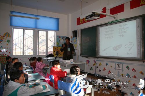 四川省甘孜州爐霍縣仁達鄉(xiāng)中心校教師正在利用多媒體教學?!?李益眾 攝