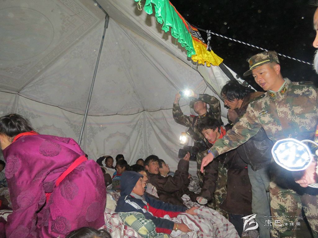 凌晨1時,在江巴村,60名官兵挨家挨戶搜救轉(zhuǎn)移群眾,連夜搭建救災(zāi)帳篷。“同志,我的小女兒拉姆找不著了,可能埋在房子里了……”澤仁阿巴急匆匆地拉著武警戰(zhàn)士的手求援,“你家在哪里?快帶我們?nèi)ィ?rdquo;未等四十歲的澤仁阿巴說完,官兵們奔向不遠處的一堆倒塌的房屋。考慮到有人埋在下面,官兵們不敢用鎬刨用鍬鏟,在另一面墻上石片不停掉落的情況下,仍然紛紛撲下身子扒拉土石結(jié)構(gòu)的殘垣斷壁,最終在兩個木箱中間找到了已哭成淚人的小拉姆,所幸6歲的拉姆安然無恙。