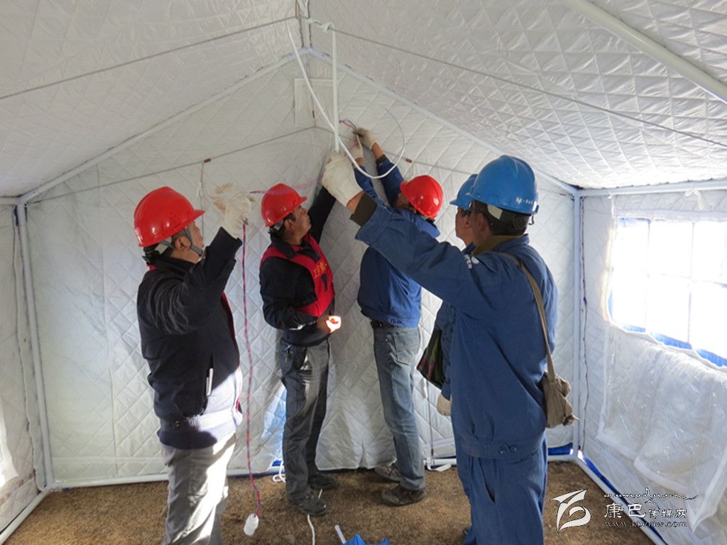 奪拉二村有4個(gè)變壓器臺區(qū),其中2個(gè)臺區(qū)為人員較多的木雅祖慶學(xué)校,地震使學(xué)校住宿樓變?yōu)槲7?,全校?000名學(xué)生轉(zhuǎn)移至學(xué)校空地上的安置點(diǎn)。為了讓安置點(diǎn)內(nèi)的受災(zāi)師生和應(yīng)急指揮中心盡快用上電,黨員突擊搶險(xiǎn)小分隊(duì)不僅要在安置點(diǎn)迅速安裝應(yīng)急照明設(shè)施,同時(shí)還要從圍墻和學(xué)校食堂的樓頂上重新布放近3段2公里長的臨時(shí)電源線。學(xué)校圍墻因地震而搖搖欲墜,稍微用點(diǎn)力,墻、磚塊或水泥就會掉下來,面臨這一難題,公司黨總支沉著應(yīng)對,迅速組織塔公供電所與新都橋供電所的黨員干部趕往震中,同時(shí)安排其余供電所的黨員干部迅速增援。先期到達(dá)的救援人員在余震不斷發(fā)生的情況下,對受損供電設(shè)備及線路進(jìn)行了緊急處理;在后期人員趕到后,公司黨總支迅速研究制定工作方案,科學(xué)分工:第一組黨員突擊搶險(xiǎn)隊(duì)負(fù)責(zé)隱患排查,第二組黨員突擊搶險(xiǎn)隊(duì)負(fù)責(zé)電線布放,第三組黨員突擊搶險(xiǎn)隊(duì)負(fù)責(zé)救災(zāi)帳篷的照明安裝。在三個(gè)小組隊(duì)員的共同努力下,用近三個(gè)小時(shí)的時(shí)間就解決了應(yīng)急指揮中心、醫(yī)療隊(duì)和臨時(shí)安置點(diǎn)的照明安裝這一難題。